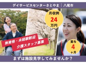 介護職|デイサービス|八尾市安中町|日勤のみ|駅チカ|資格経験不問|デイサービスセンターさとやま