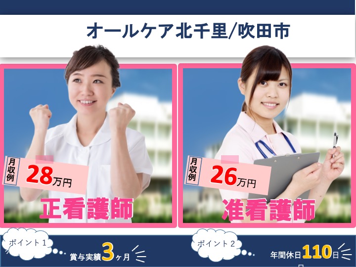 看護師/放課後デイサービス/日勤のみ/月給28万円可/子供好き歓迎/車通勤可|吹田市上山田|オールケア北千里